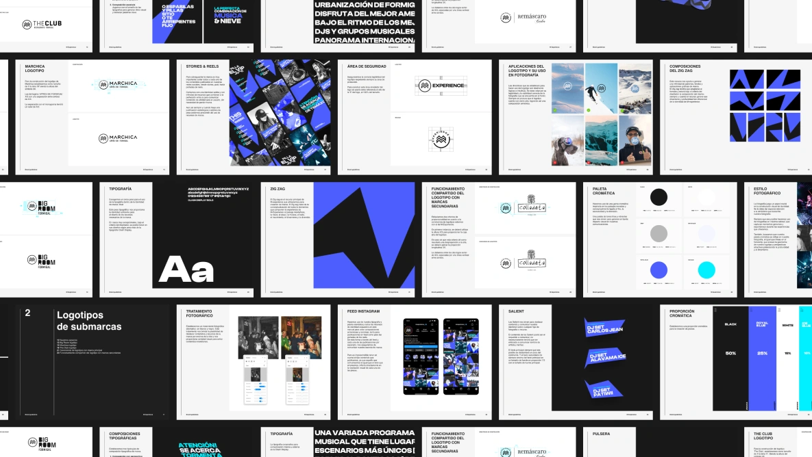 El Zig-Zag permite desarrollar recursos visuales vibrantes y versátiles, adaptables tanto a medios físicos estáticos como a formatos animados para el mundo digital y redes sociales. Estos elementos se complementan con una paleta cromática que transmiten los conceptos de exclusividad y diversión, tanto de día como de noche. El negro en mayor proporción, asociado al ocio nocturno y la exclusividad junto al Royal Blue, un color usado históricamente por la realeza. La diversión durante el día lo expresa el blanco junto al Ice Blue, inspirado en el hielo ártico; unidos recuerdan visualmente a los paisajes nevados con cielo azul de las montañas de Aragón.